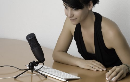 - An meinem Computer steckt ein AKG Perception 120 USB Großmembran-Kondensatormikrofon. Da spreche ich hinein und nehme den Ton mit Audacity auf.