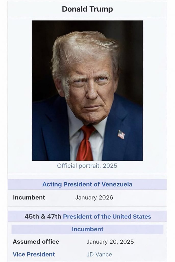 Ob die Fifa ihm diesen aberkennt, wenn er wirklich Grönland und damit die EU und den Natostaat Dänemark angreifen lässt und damit endgültig die Welt ins Chaos stürzt, darf als fraglich angesehen werden. In der Zwischenzeit bezeichnet sich Trump jedenfalls vorsorglich selbst als „handelnden Präsidenten Venezuelas“ – Ehre, wem Ehre gebührt, eben…