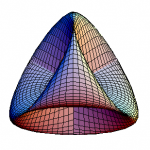 Wie zeichnet man eine projektive Ebene mit möglichst wenigen Überschneidungen in unseren 3-dimensionalen Raum? Vor 2 Wochen hatten wir gesehen, dass sich nicht-orientierbare geschlossene Flächen wie die Kleinsche Flasche oder die projektive Ebene nicht in den R3 einbetten lassen. Es gibt aber natürlich Abbildungen dieser Flächen mit Selbstschnitten. Ein oft gezeigtes Bild einer im R3…