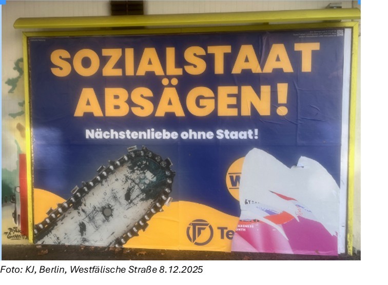 Die „Stunde der Raubtiere“ (Giuliano da Empoli) hat nicht nur international geschlagen, auch innenpolitisch sind wir wieder in einer Situation, in der sich die „Leistungsträger“ zum Angriff ermutigt fühlen. Sie wollen den Sozialstaat nicht, sie wollen keine Solidarität, keine Rechte auf Teilhabe. Sie wollen Ellenbogenfreiheit. Ein mildtätiger Euro für nichtabschiebbare Stadtbildzumutungen ist natürlich immer im Budget.