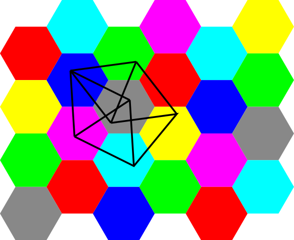Mit wievielen Farben kann man die Ebene einfärben, so dass es keine gleichfarbigen Punkte mit Abstand 1 gibt? Im Bild oben ist die Ebene in Sechsecke vom Durchmesser 0,99 zerlegt, so dass man sie mit sieben Farben einfärben kann. Punkte im Abstand 1 haben dann jeweils unterschiedliche Farben. Grey hatte letztes Jahr gezeigt, dass vier…