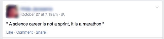 Vor einiger Zeit habe ich folgenden Satz gelesen: “Eine Karriere in der Wissenschaft ist kein Sprint, sondern ein Marathon”. Klingt oberflächlich richtig. Wer in der Wissenschaft erfolg haben will, muss Scheuklappen anlegen, Gas geben, und vor allem ausdauernd sein. Bei einem Volksmarathon kommen im Durchschnitt rund 80% der Starter im Ziel an, und wer ausreichend…