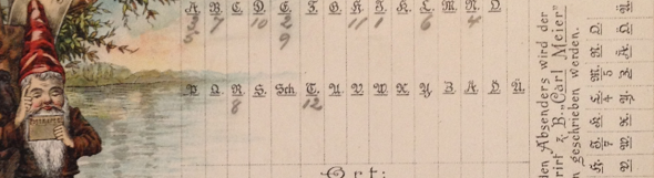 Diese verschlüsselte Postkarte macht das Entschlüsseln besonders einfach: Der Schlüssel ist auf der Karte gleich abgedruckt. Ihren Zweck dürfte diese ungewöhnliche Form des Verschlüsselns trotzdem erfüllt haben.