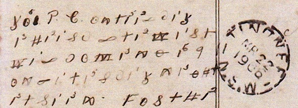 Auf einer australischen Web-Seite wird eine verschlüsselte Postkarte aus dem Jahr 1906 vorgestellt. Kann sie jemand entschlüsseln?