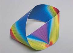 Topologie jetzt auch im Agenten-Thriller: “Wissen Sie, was ein Möbius-Band ist? Ich nehme diesen Papierstreifen hier, drehe ihn um 180 Grad, verbinde dann beide Enden: das Möbius-Band. Faszinierend, nicht wahr? Und wenn ich jetzt mit dem Finger einmal ganz herumfahre, lande ich auf der anderen Seite. Verstehen Sie?” “Die Möbius-Affäre”, ab heute im Kino.