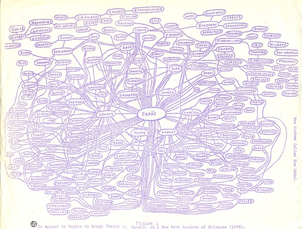 Die Erdős-Zahl beschreibt den Abstand eines Mathematikers vom Mittelpunkt (Paul Erdős, der heute 100 geworden wäre) des oben abgebildetenn Kollaborationsgraphen. Also, wer ein gemeinsames Paper mit Erdős hatte, der hat Erdős-Zahl 1, wer einen Koautor mit Erdős-Zahl 1 hatte, der hat Erdős-Zahl 2 etc. Natürlich könnte man jeden Mathematiker zum Mittelpunkt des Kollaborationsgraphen und damit…